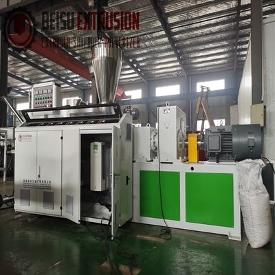 BEISU Plastik PVC pelletizing Konik çift vidalı hava soğutmalı sıcak kesilmiş granulatör, esas olarak PVC + CaCo kalsiyum karbonat gibi toz plastiklerin sıcak kesilmiş granülasyonu ve granül haline ekstrüzyonu için kullanılır.Düşük kesme hızı özelliklerine sahiptir., eşit plastikleme ve karıştırma, yüksek çıkış ve istikrarlı kalite.